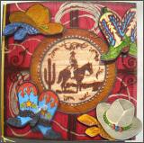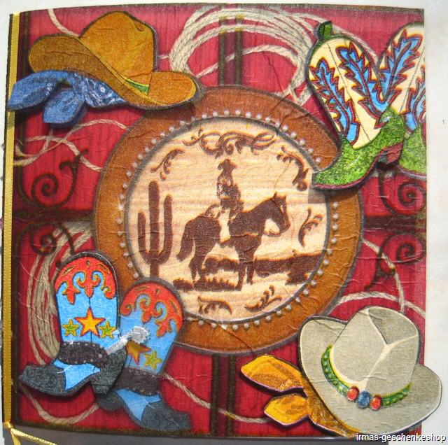| Karte in 3-D Serviettentechnik mit Tonkarton. Komplett mit Couvert, Einlegeblatt und Satinband. Karte in Cellophanhülle. Grösse 15,5 x 15,5 cm
