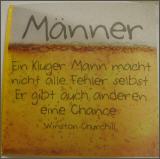 Karte in 3-D Serviettentechnik (Aufbau mit Kügelchen). Komplett mit Couvert, Einlegeblatt und Satinband. Karte in Cellophanhülle. Spruch auf Karte "Ein kluger Mann macht nicht alle Fehler selbst. Er gibt auch anderne eine Chance." Grösse 15,5 x 15,5 cm