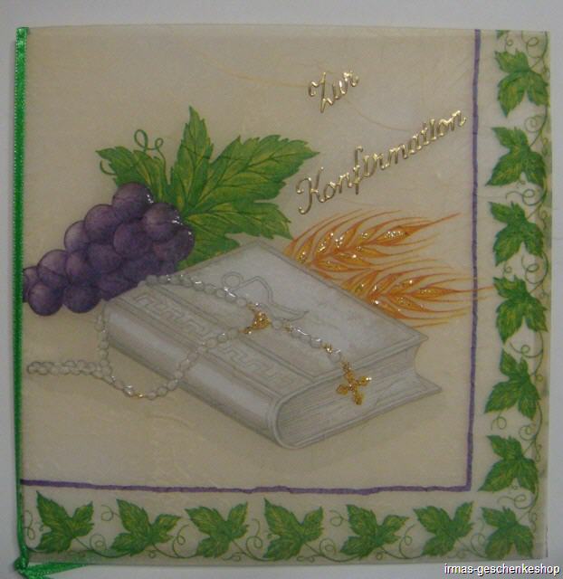 | Karte in 3-D Serviettentechnik (Aufbau mit 3-D Lack). Komplett mit Couvert, Einlegeblatt und Satinband. Karte in Cellophanhülle. Grösse 15,5 x 15,5 cm