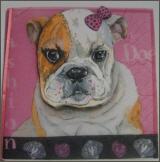 | Karte in 3-D Serviettentechnik (Aufbau mit 3-D Lack und Tonkarton). Komplett mit Couvert, Einlegeblatt und Satinband. Karte in Cellophanhülle. Grösse 15,5 x 15,5 cm