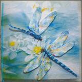 Karte in 3-D Serviettentechnik mit Tonkarton und Pastellglitzer. Komplett mit Couvert, Einlegeblatt und Satinband. Karte in Cellophanhülle. Grösse 15,5 x 15,5 cm