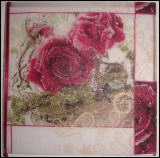 Karte Serviettentechnik (Aufbau mit Ice-Effekt). Komplett mit Couvert, Einlegeblatt und Satinband. Karte in Cellophanhülle. Grösse 15,5 x 15,5 cm |