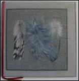 Karte in Serviettentechnik mit echter grauer Feder. Komplett mit Couvert, Einlegeblatt und Satinband. Karte in Cellophanhülle. Grösse 15,5 x 15,5 cm |