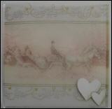 Karte in 3-D Serviettentechnik (Aufbau mit Tonkarton). Komplett mit Couvert, Einlegeblatt und Satinband. Karte in Cellophanhülle. Grösse 15,5 x 15,5 cm |