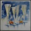 Karte in 3-D Serviettentechnik (Aufbau mit Tonkarton ). Komplett mit Couvert, Einlegeblatt und Satinband. Karte in Cellophanhülle. Grösse 12 x 12 cm 5,50 CHF