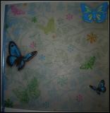 Karte in 3-D Serviettentechnik mit Tonkarton. Komplett mit Couvert, Einlegeblatt und Satinband. Karte in Cellophanhülle. Grösse 15,5 x 15,5 cm |