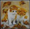 Katzen im Herbst Karte in 3-D Serviettentechnik (Aufbau mit Tonkarton). Komplett mit Couvert, Einlegeblatt und Satinband. Karte in Cellophanhülle. Grösse 15,5 x 15,5 cm 7,00 CHF