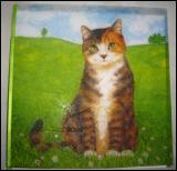 Karte in 3-D Serviettentechnik und Glitzer. Komplett mit Couvert, Einlegeblatt und Satinband. Karte in Cellophanhülle. Grösse 15,5 x 15,5 cm |