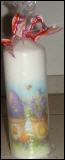 Weisse Kerze mit Serviettentechnik verziert. Grösse 18cm Durchmesser 6,5cm