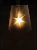 Lampenschim mit Sternenfolie auf ein Weinglas mit Teelicht, (Weinglas 6,5cm Durchmesser) Grösse: H 9,5cm ohne Weinglas und ohne Teelicht |